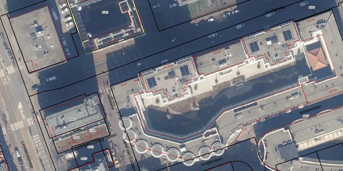 Het adres ligt op het perceel ASD19-W-8607, dat zich in de kadastrale gemeente Amsterdam bevindt. Het perceel is met 1,4 ha relatief groot. Het gemiddelde ligt in de kadastrale gemeente Amsterdam op 1563,05 m². Het grootste perceel in de kadastrale gemeente is 17,9 ha. Het kleinste perceel heeft een oppervlakte van 0 m². Er zijn 312 adressen aanwezig op het perceel. De laatste wijziging in het de Basisregistratie Kadaster (BRK) was op 29-11-2010.