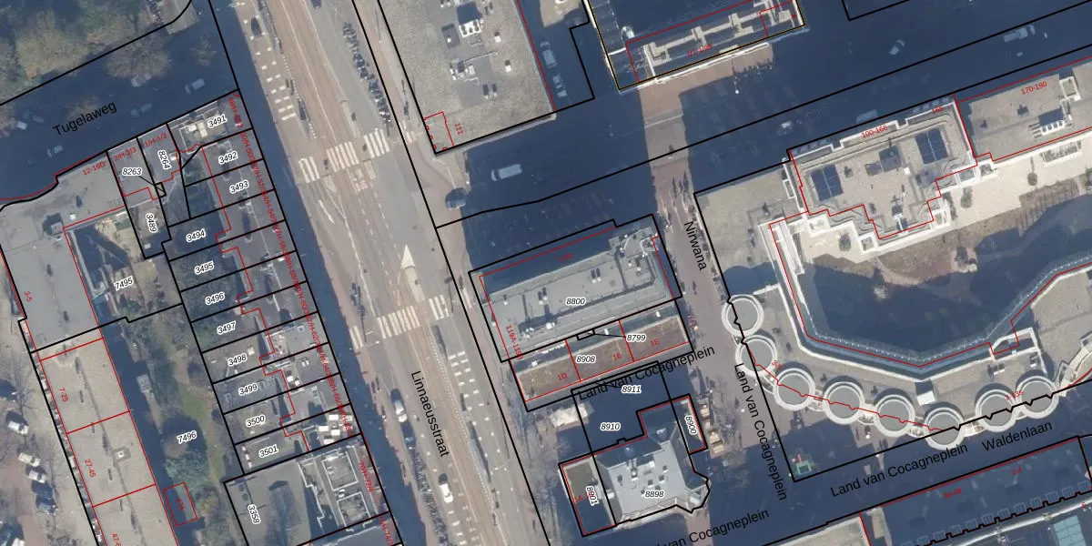 Het adres is gelegen op perceel 8800 in de sectie W en de kadastrale gemeente Amsterdam. De kadastrale aanduiding is aldus ASD19-W-8800. Het perceel is 606 m² groot. Dat is kleiner dan de gemiddelde perceeloppervlakte in Amsterdam, dat op 1563,61 m² ligt. Het grootste perceel in de kadastrale gemeente is 17,9 ha. Het kleinste perceel heeft een oppervlakte van 0 m². Op het perceel liggen in totaal 43 adressen. De huidige grenzen van het perceel zijn digitaal in de Basisregistratie Kadaster (BRK) geregistreerd op 08-02-2017.