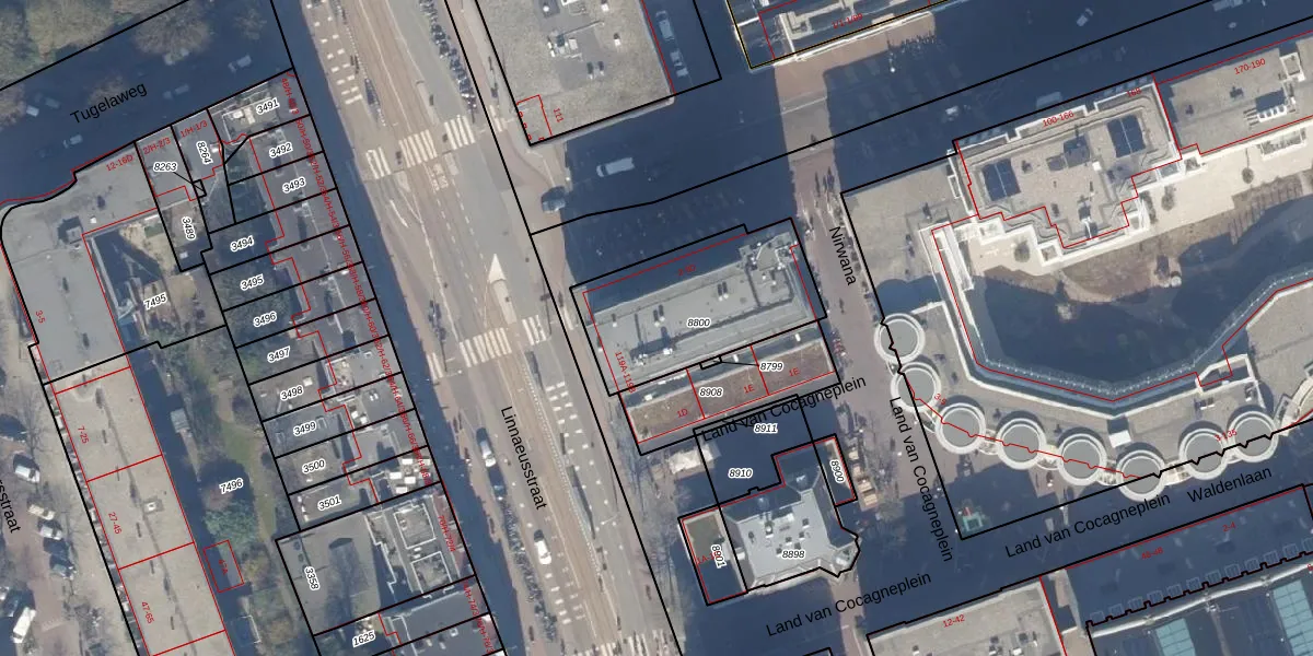 Het adres is gelegen op perceel 8800 in de sectie W en de kadastrale gemeente Amsterdam. De kadastrale aanduiding is aldus ASD19-W-8800. Het perceel is 606 m² groot. Dat is kleiner dan de gemiddelde perceeloppervlakte in Amsterdam, dat op 1563,61 m² ligt. Het grootste perceel in de kadastrale gemeente is 17,9 ha. Het kleinste perceel heeft een oppervlakte van 0 m². Op het perceel zijn 43 adressen aanwezig. De huidige grenzen van het perceel zijn digitaal in de Basisregistratie Kadaster (BRK) geregistreerd op 08-02-2017.