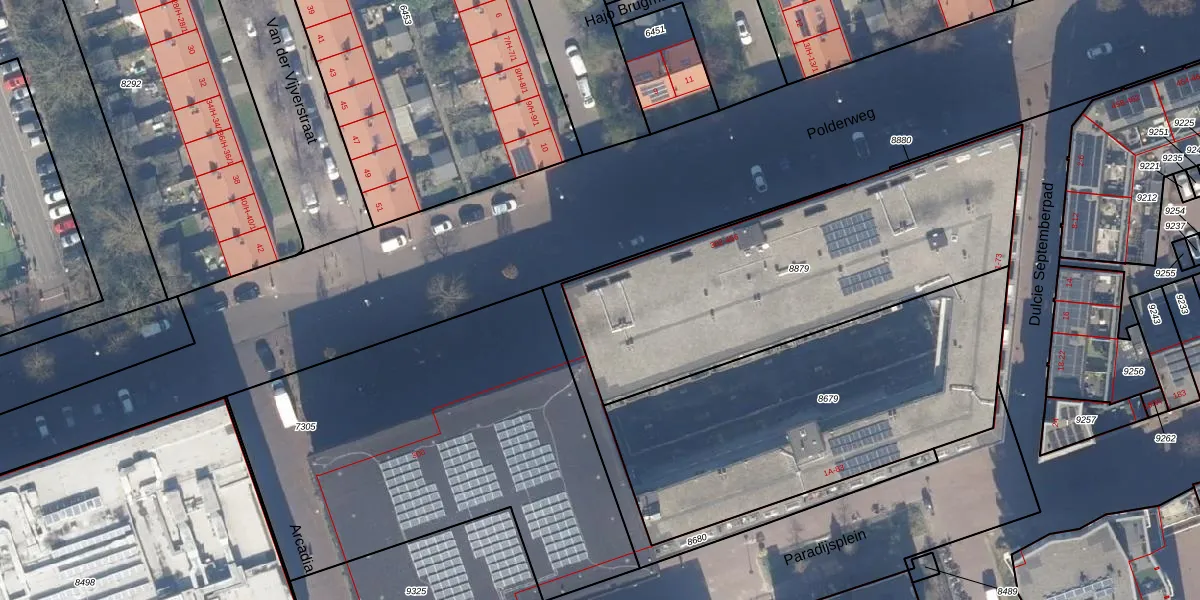 Het adres is gelegen op perceel 8879 in de sectie W en de kadastrale gemeente Amsterdam. De kadastrale aanduiding is aldus ASD19-W-8879. De oppervlakte van het perceel is 1643 m². Dat is groter dan gemiddeld in Amsterdam, waar de gemiddelde perceeloppervlakte op 1563,05 m² ligt. De grootste perceeloppervlakte in de kadastrale gemeente is 17,9 ha. De kleinste oppervlakte bedraagt 0 m². Op het perceel zijn 91 adressen aanwezig. De huidige grenzen van het perceel zijn digitaal in de Basisregistratie Kadaster (BRK) geregistreerd op 10-07-2018.