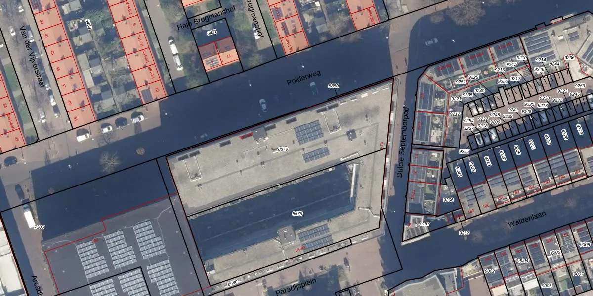 Het adres is gelegen op perceel 8879 in de sectie W en de kadastrale gemeente Amsterdam. De kadastrale aanduiding is aldus ASD19-W-8879. De oppervlakte van het perceel is 1643 m². Dat is groter dan gemiddeld in Amsterdam, waar de gemiddelde perceeloppervlakte op 1563,05 m² ligt. De grootste perceeloppervlakte in de kadastrale gemeente is 17,9 ha. De kleinste oppervlakte bedraagt 0 m². Op het perceel liggen in totaal 91 adressen. De laatste wijziging in het de Basisregistratie Kadaster (BRK) was op 10-07-2018.
