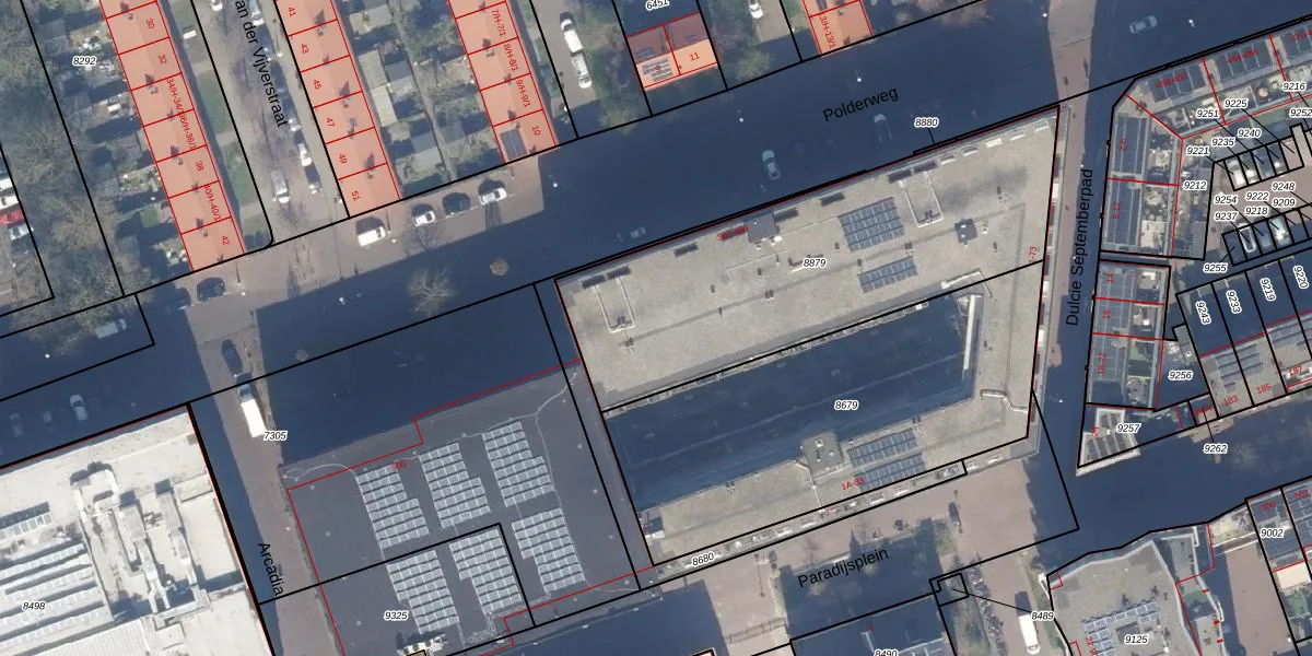 Het adres is gelegen op perceel 8879 in de sectie W en de kadastrale gemeente Amsterdam. De kadastrale aanduiding is aldus ASD19-W-8879. De oppervlakte van het perceel is 1643 m². Dat is groter dan gemiddeld in Amsterdam, waar de gemiddelde perceeloppervlakte op 1563,05 m² ligt. Het grootste perceel in de kadastrale gemeente is 17,9 ha. Het kleinste perceel heeft een oppervlakte van 0 m². Er zijn 91 adressen aanwezig op het perceel. In de Basisregistratie Kadaster (BRK) werden de grenzen van het perceel geregistreerd op 10-07-2018.