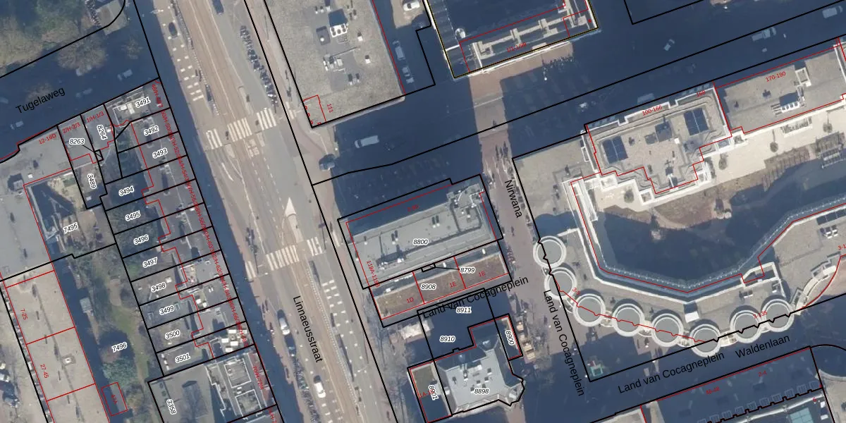 Het perceel waarop het adres ligt is ASD19-W-8800. De afkorting 'ASD19' staat voor kadastrale gemeente Amsterdam. Het perceel is 606 m² groot. Dat is kleiner dan de gemiddelde perceeloppervlakte in Amsterdam, dat op 1563,61 m² ligt. Het kleinste perceel in de kadastrale gemeente is 0 m² groot. De grootste perceeloppervlakte is 17,9 ha. Op het perceel zijn 43 adressen aanwezig. De huidige grenzen van het perceel zijn digitaal in de Basisregistratie Kadaster (BRK) geregistreerd op 08-02-2017.