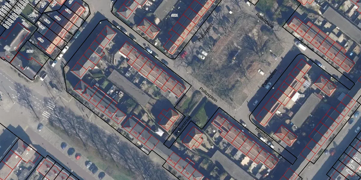 Polluxplein 1 is gelegen op kadastraal perceel ASD28AH1590. Deze kadastrale aanduiding is uniek en wordt gebruikt door het Kadaster om eigendomsrechten en andere zakelijke rechten vast te leggen. Het perceel maakt onderdeel uit van de kadastrale gemeente Amsterdam.