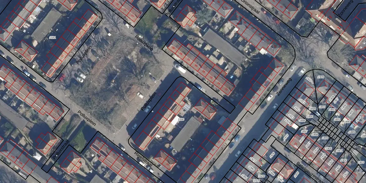 Het perceel waarop Polluxplein 22 staat heeft een oppervlakte van 1,4 ha. Dit is een zeer groot perceel. De perceeloppervlakte wordt geregistreerd door het Kadaster. Gedetailleerde informatie over de maten van dit perceel kunt u vinden in het rapport Kadastrale kaart met maatvoering van Polluxplein 22.