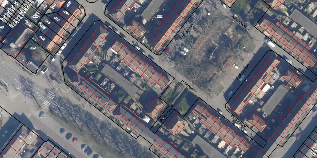 Het perceel waarop Polluxplein 3 staat heeft een oppervlakte van 1,4 ha. Dit is een zeer groot perceel. De perceeloppervlakte wordt geregistreerd door het Kadaster. Gedetailleerde informatie over de maten van dit perceel kunt u vinden in het rapport Kadastrale kaart met maatvoering van Polluxplein 3.