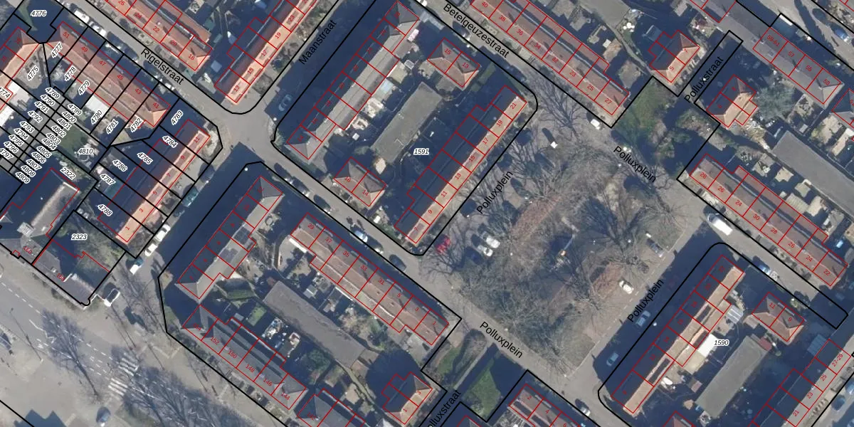 Het perceel waarop Polluxplein 9 staat heeft een oppervlakte van 2141 m². Dit is een zeer groot perceel. De perceeloppervlakte wordt geregistreerd door het Kadaster. Gedetailleerde informatie over de maten van dit perceel kunt u vinden in het rapport Kadastrale kaart met maatvoering van Polluxplein 9.
