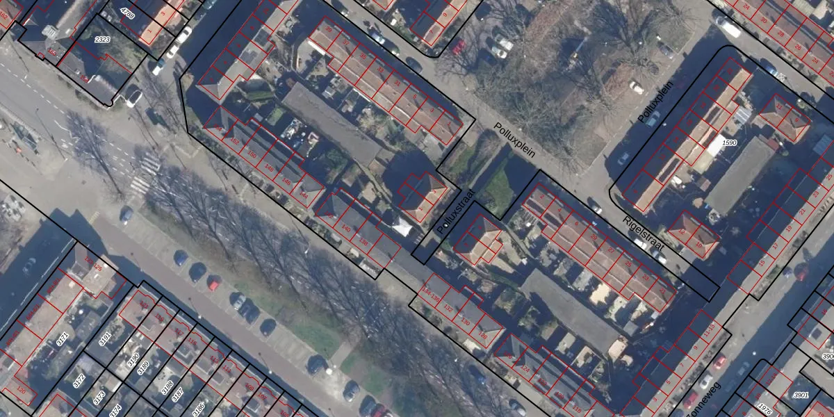 Polluxstraat 1 is gelegen op kadastraal perceel ASD28AH1590. Deze kadastrale aanduiding is uniek en wordt gebruikt door het Kadaster om eigendomsrechten en andere zakelijke rechten vast te leggen. Het perceel maakt onderdeel uit van de kadastrale gemeente Amsterdam.