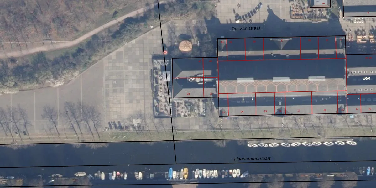 Het perceel waarop Polonceau-kade 23 staat heeft een oppervlakte van 7389 m². Dit is een zeer groot perceel. De perceeloppervlakte wordt geregistreerd door het Kadaster. Gedetailleerde informatie over de maten van dit perceel kunt u vinden in het rapport Kadastrale kaart met maatvoering van Polonceau-kade 23.