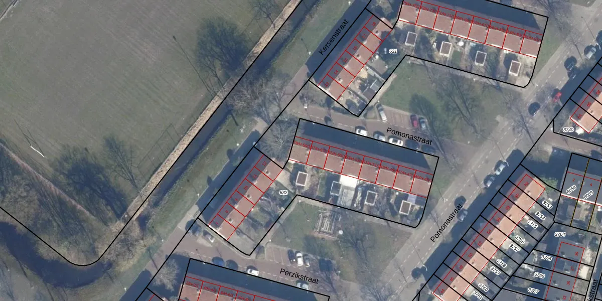 Het perceel waarop Pomonastraat 59-H staat heeft een oppervlakte van 1790 m². Dit is een zeer groot perceel. De perceeloppervlakte wordt geregistreerd door het Kadaster. Gedetailleerde informatie over de maten van dit perceel kunt u vinden in het rapport Kadastrale kaart met maatvoering van Pomonastraat 59-H.