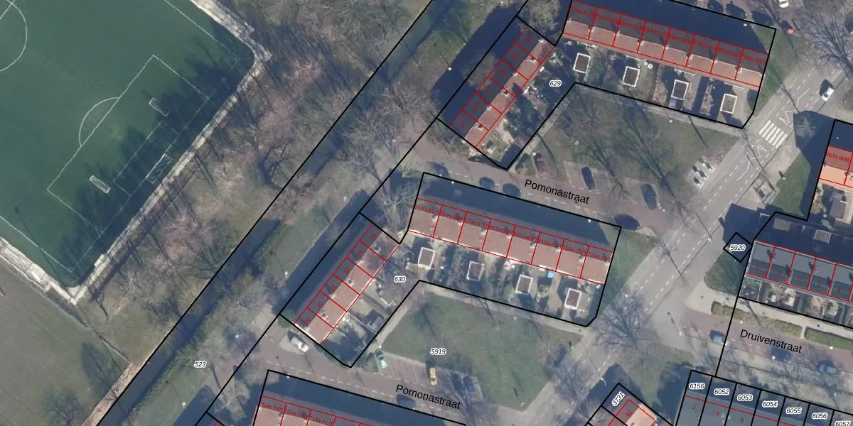 Het perceel waarop Pomonastraat 91-H staat heeft een oppervlakte van 1790 m². Dit is een zeer groot perceel. De perceeloppervlakte wordt geregistreerd door het Kadaster. Gedetailleerde informatie over de maten van dit perceel kunt u vinden in het rapport Kadastrale kaart met maatvoering van Pomonastraat 91-H.