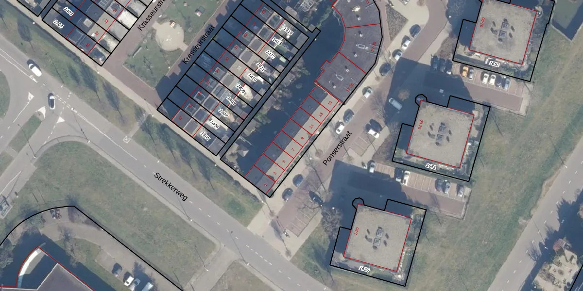 Het perceel waarop Ponserstraat 7 staat heeft een oppervlakte van 2329 m². Dit is een zeer groot perceel. De perceeloppervlakte wordt geregistreerd door het Kadaster. Gedetailleerde informatie over de maten van dit perceel kunt u vinden in het rapport Kadastrale kaart met maatvoering van Ponserstraat 7.