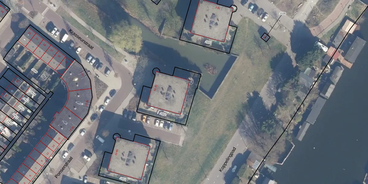 Het perceel waarop Ponserstraat 88 staat heeft een oppervlakte van 709 m². Dit is een groot perceel. De perceeloppervlakte wordt geregistreerd door het Kadaster. Gedetailleerde informatie over de maten van dit perceel kunt u vinden in het rapport Kadastrale kaart met maatvoering van Ponserstraat 88.