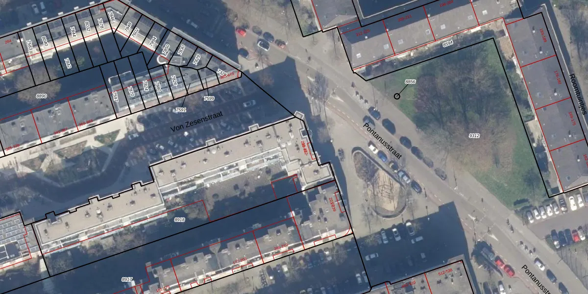 Het perceel waarop Pontanusstraat 23-D staat heeft een oppervlakte van 2209 m². Dit is een zeer groot perceel. De perceeloppervlakte wordt geregistreerd door het Kadaster. Gedetailleerde informatie over de maten van dit perceel kunt u vinden in het rapport Kadastrale kaart met maatvoering van Pontanusstraat 23-D.
