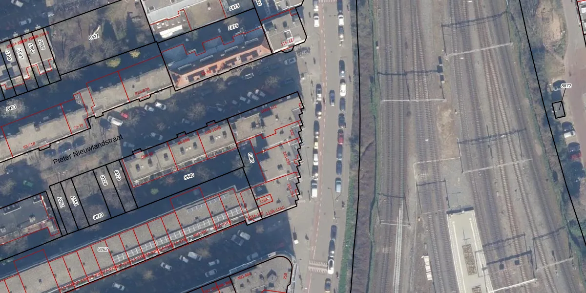 Het adres ligt op het perceel ASD15-S-8388, dat zich in de kadastrale gemeente Amsterdam bevindt. De oppervlakte van het perceel is 732 m². Dat is groter dan gemiddeld in Amsterdam, waar de gemiddelde perceeloppervlakte op 537,06 m² ligt. Het grootste perceel in de kadastrale gemeente is 14,5 ha. Het kleinste perceel heeft een oppervlakte van 0 m². Op het perceel liggen in totaal 32 adressen. De huidige grenzen van het perceel zijn digitaal in de Basisregistratie Kadaster (BRK) geregistreerd op 09-11-2006.