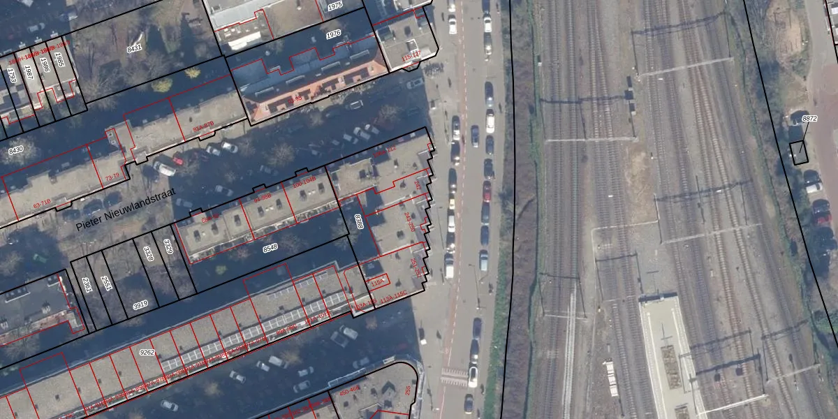 Het adres ligt op het perceel ASD15-S-8388, dat zich in de kadastrale gemeente Amsterdam bevindt. De oppervlakte van het perceel is 732 m². Dat is groter dan gemiddeld in Amsterdam, waar de gemiddelde perceeloppervlakte op 537,06 m² ligt. Het kleinste perceel in de kadastrale gemeente is 0 m² groot. De grootste perceeloppervlakte is 14,5 ha. Er zijn 32 adressen aanwezig op het perceel. De laatste wijziging in het de Basisregistratie Kadaster (BRK) was op 09-11-2006.