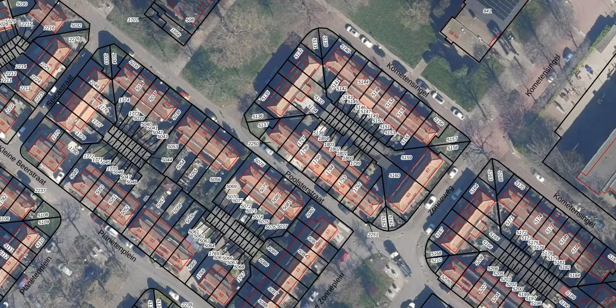 Gebruik de zoekbalk of klik op een perceel voor informatie over de adressen binnen dit perceel.