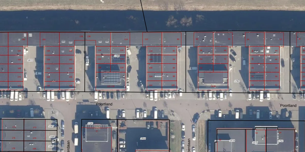Het perceel waarop Poortland 104 staat heeft een oppervlakte van 2625 m². Dit is een zeer groot perceel. De perceeloppervlakte wordt geregistreerd door het Kadaster. Gedetailleerde informatie over de maten van dit perceel kunt u vinden in het rapport Kadastrale kaart met maatvoering van Poortland 104.