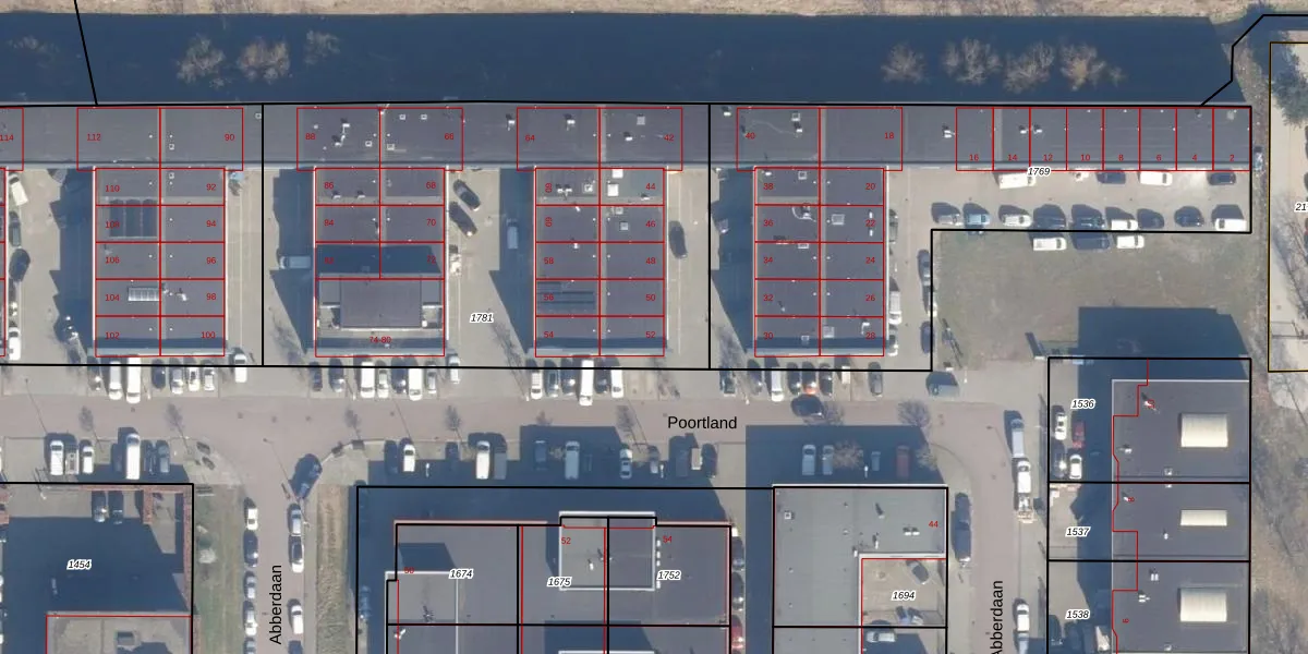 Het perceel waarop Poortland 52 staat heeft een oppervlakte van 2770 m². Dit is een zeer groot perceel. De perceeloppervlakte wordt geregistreerd door het Kadaster. Gedetailleerde informatie over de maten van dit perceel kunt u vinden in het rapport Kadastrale kaart met maatvoering van Poortland 52.