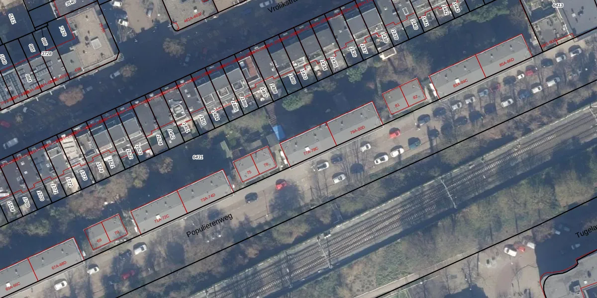 Populierenweg 77-B is gelegen op kadastraal perceel ASD19W6431. Deze kadastrale aanduiding is uniek en wordt gebruikt door het Kadaster om eigendomsrechten en andere zakelijke rechten vast te leggen. Het perceel maakt onderdeel uit van de kadastrale gemeente Amsterdam.