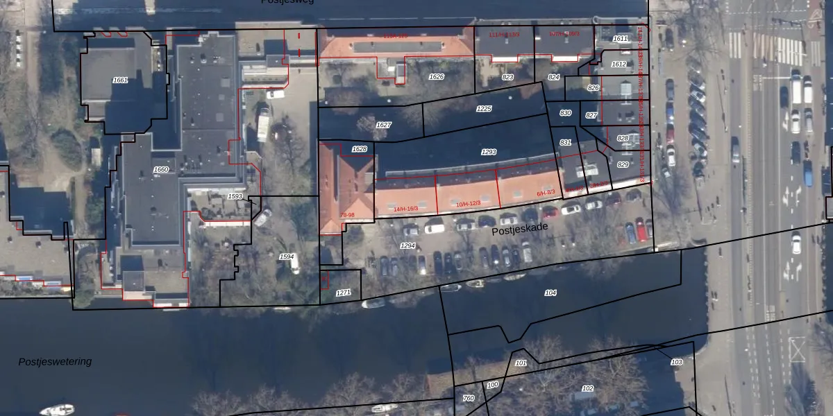 Postjeskade 14-H is gelegen op kadastraal perceel STN02M1293. Deze kadastrale aanduiding is uniek en wordt gebruikt door het Kadaster om eigendomsrechten en andere zakelijke rechten vast te leggen. Het perceel maakt onderdeel uit van de kadastrale gemeente Sloten Noord-Holland.
