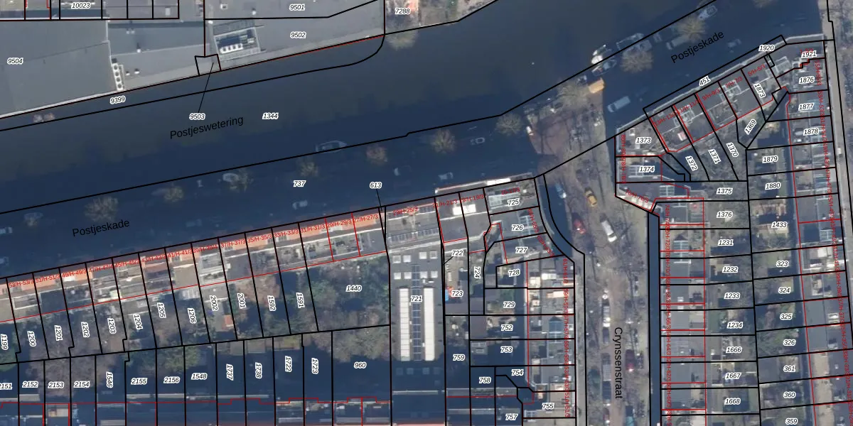 Postjeskade 23-H is gelegen op kadastraal perceel STN02M721. Deze kadastrale aanduiding is uniek en wordt gebruikt door het Kadaster om eigendomsrechten en andere zakelijke rechten vast te leggen. Het perceel maakt onderdeel uit van de kadastrale gemeente Sloten Noord-Holland.