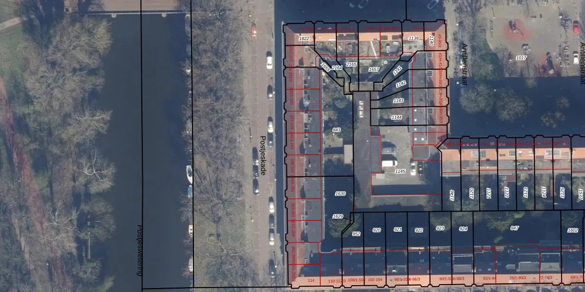 Postjeskade 241-3 is gelegen op kadastraal perceel STN02M843. Deze kadastrale aanduiding is uniek en wordt gebruikt door het Kadaster om eigendomsrechten en andere zakelijke rechten vast te leggen. Het perceel maakt onderdeel uit van de kadastrale gemeente Sloten Noord-Holland.