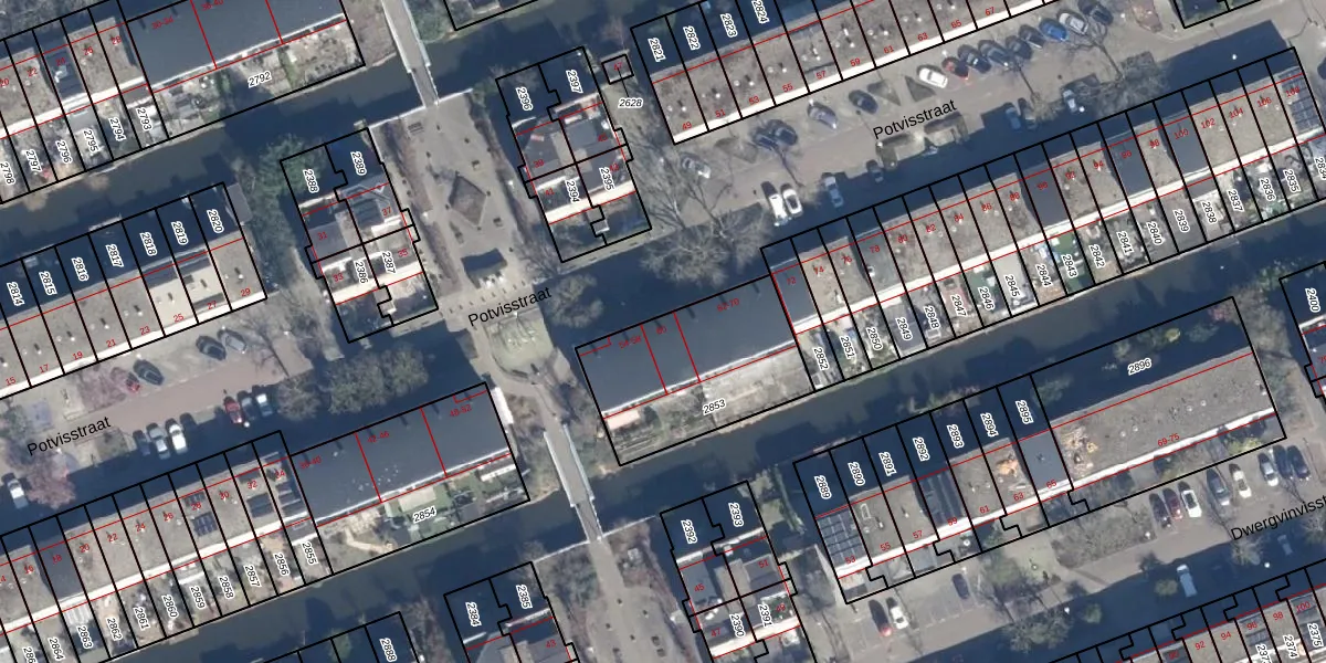 Het perceel waarop Potvisstraat 60 staat heeft een oppervlakte van 601 m². Dit is een groot perceel. De perceeloppervlakte wordt geregistreerd door het Kadaster. Gedetailleerde informatie over de maten van dit perceel kunt u vinden in het rapport Kadastrale kaart met maatvoering van Potvisstraat 60.