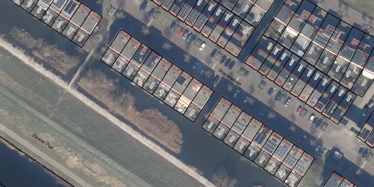 Pracanalaan 44-C is gelegen op kadastraal perceel STN02G3389. Deze kadastrale aanduiding is uniek en wordt gebruikt door het Kadaster om eigendomsrechten en andere zakelijke rechten vast te leggen. Het perceel maakt onderdeel uit van de kadastrale gemeente Sloten Noord-Holland.