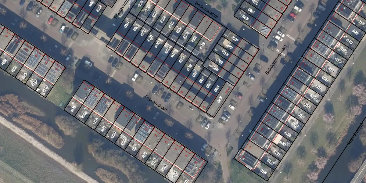 Gebruik de zoekbalk of klik op een perceel voor informatie over de adressen binnen dit perceel.
