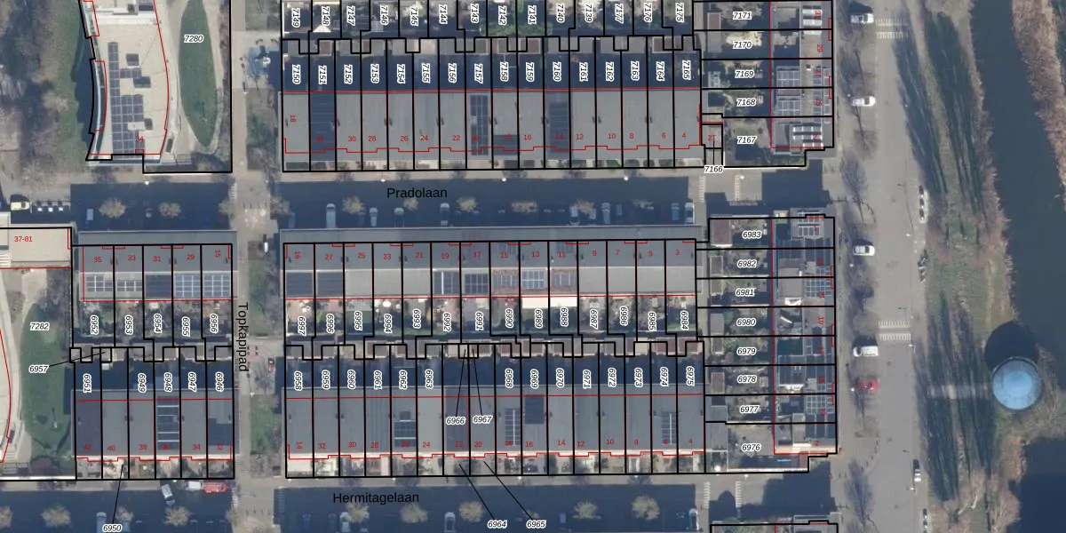 Gebruik de zoekbalk of klik op een perceel voor informatie over de adressen binnen dit perceel.