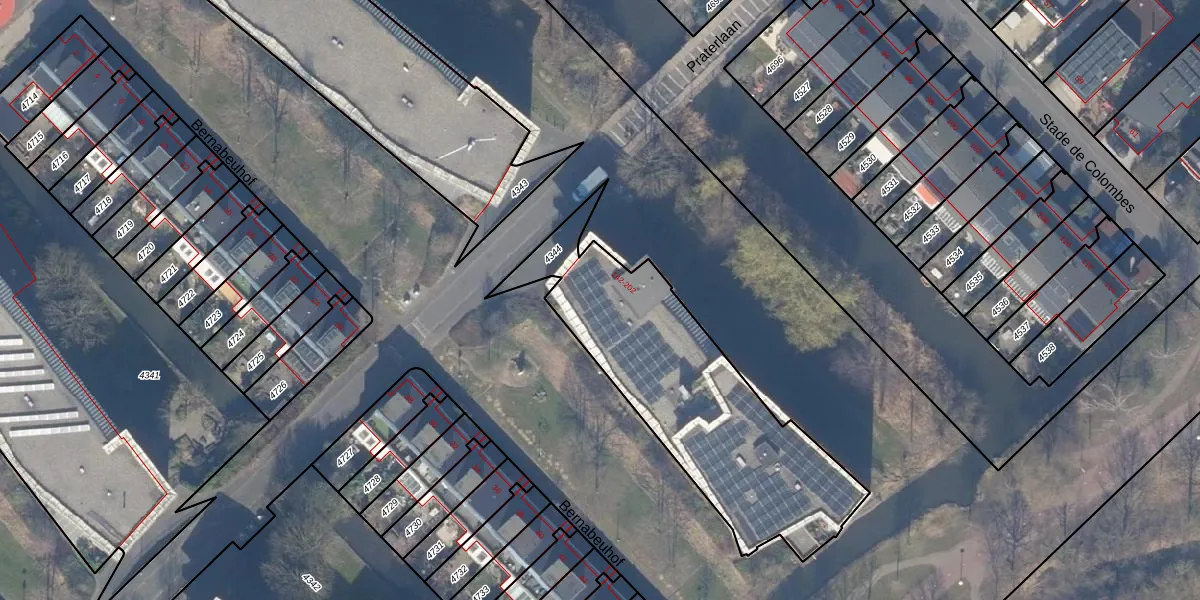 Het perceel waarop Praterlaan 182 staat heeft een oppervlakte van 1160 m². Dit is een zeer groot perceel. De perceeloppervlakte wordt geregistreerd door het Kadaster. Gedetailleerde informatie over de maten van dit perceel kunt u vinden in het rapport Kadastrale kaart met maatvoering van Praterlaan 182.