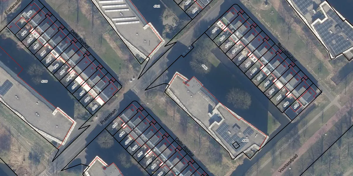 Het perceel waarop Praterlaan 84 staat heeft een oppervlakte van 2641 m². Dit is een zeer groot perceel. De perceeloppervlakte wordt geregistreerd door het Kadaster. Gedetailleerde informatie over de maten van dit perceel kunt u vinden in het rapport Kadastrale kaart met maatvoering van Praterlaan 84.