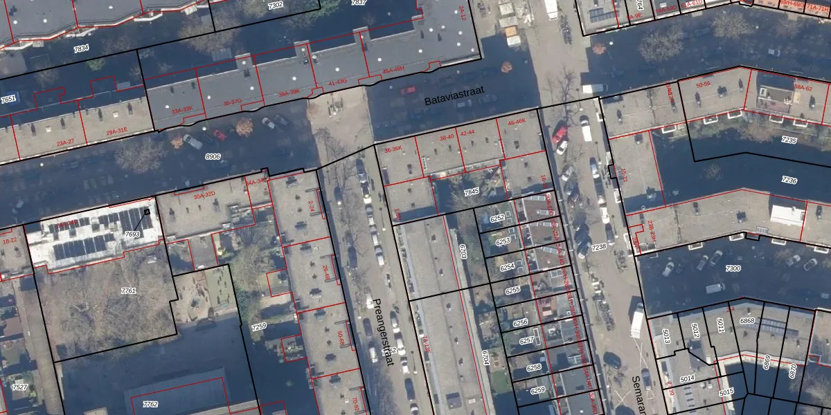 Het perceel waarop Preangerstraat 5-D staat heeft een oppervlakte van 800 m². Dit is een groot perceel. De perceeloppervlakte wordt geregistreerd door het Kadaster. Gedetailleerde informatie over de maten van dit perceel kunt u vinden in het rapport Kadastrale kaart met maatvoering van Preangerstraat 5-D.