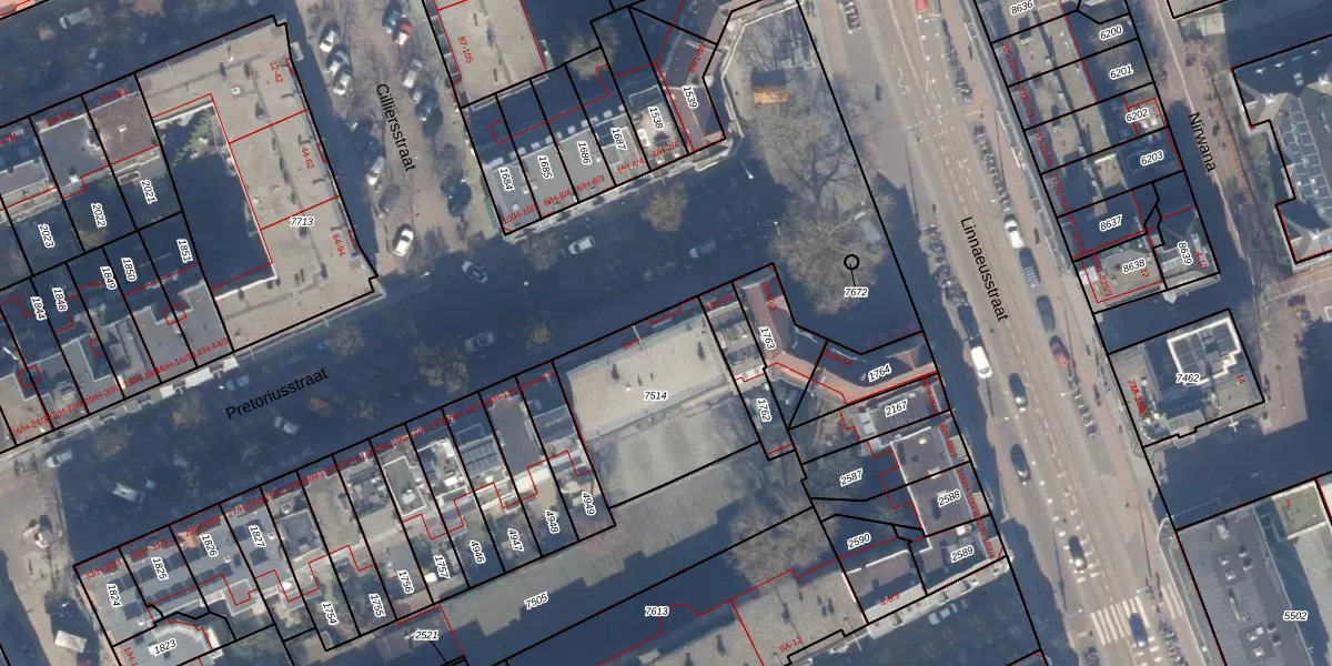 Het perceel waarop Pretoriusstraat 3-H staat heeft een oppervlakte van 577 m². Dit is een groot perceel. De perceeloppervlakte wordt geregistreerd door het Kadaster. Gedetailleerde informatie over de maten van dit perceel kunt u vinden in het rapport Kadastrale kaart met maatvoering van Pretoriusstraat 3-H.