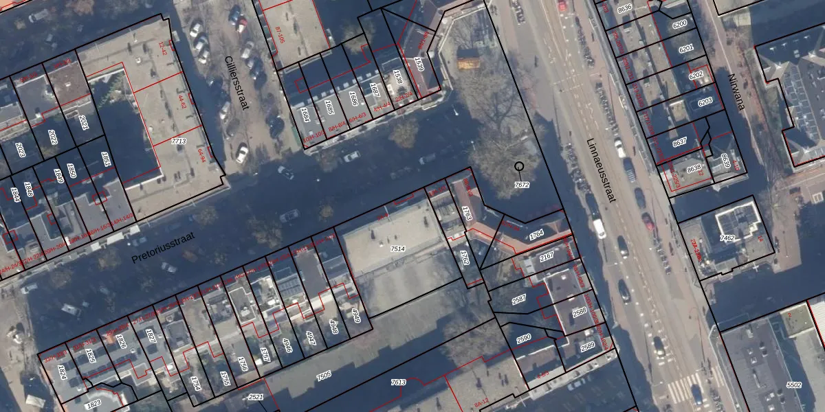 Het perceel waarop Pretoriusstraat 3-L staat heeft een oppervlakte van 577 m². Dit is een groot perceel. De perceeloppervlakte wordt geregistreerd door het Kadaster. Gedetailleerde informatie over de maten van dit perceel kunt u vinden in het rapport Kadastrale kaart met maatvoering van Pretoriusstraat 3-L.