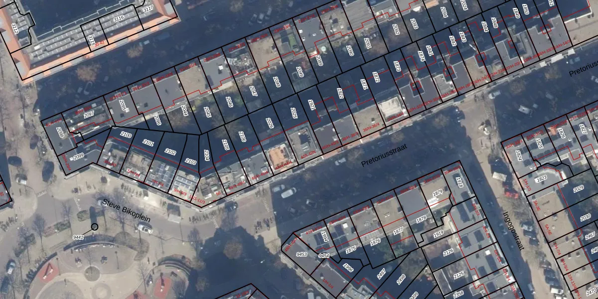 Pretoriusstraat 42-E is gelegen op kadastraal perceel ASD19W2025. Deze kadastrale aanduiding is uniek en wordt gebruikt door het Kadaster om eigendomsrechten en andere zakelijke rechten vast te leggen. Het perceel maakt onderdeel uit van de kadastrale gemeente Amsterdam.