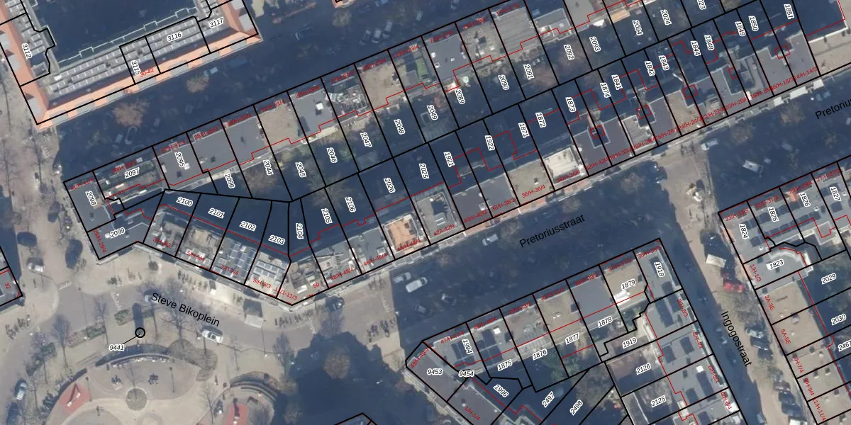 Het perceel waarop Pretoriusstraat 42-K staat heeft een oppervlakte van 198 m². Dit is een middelgroot perceel. De perceeloppervlakte wordt geregistreerd door het Kadaster. Gedetailleerde informatie over de maten van dit perceel kunt u vinden in het rapport Kadastrale kaart met maatvoering van Pretoriusstraat 42-K.