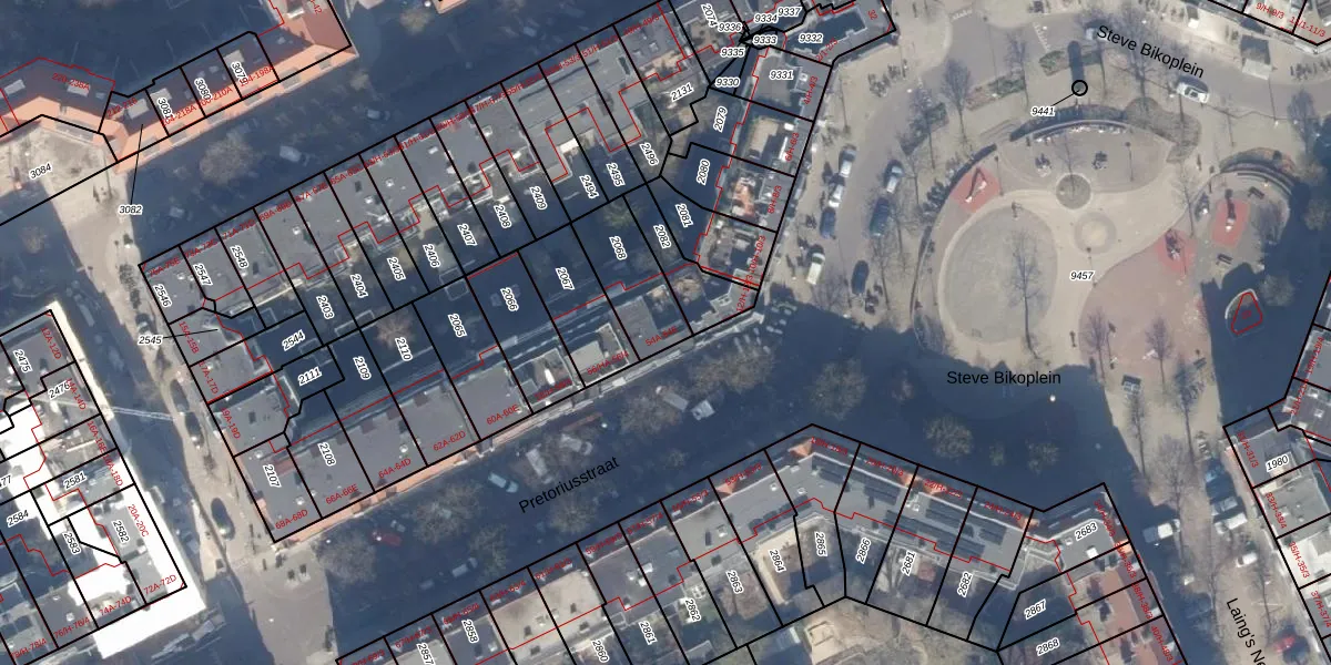 Het perceel waarop Pretoriusstraat 54-E staat heeft een oppervlakte van 212 m². Dit is een middelgroot perceel. De perceeloppervlakte wordt geregistreerd door het Kadaster. Gedetailleerde informatie over de maten van dit perceel kunt u vinden in het rapport Kadastrale kaart met maatvoering van Pretoriusstraat 54-E.