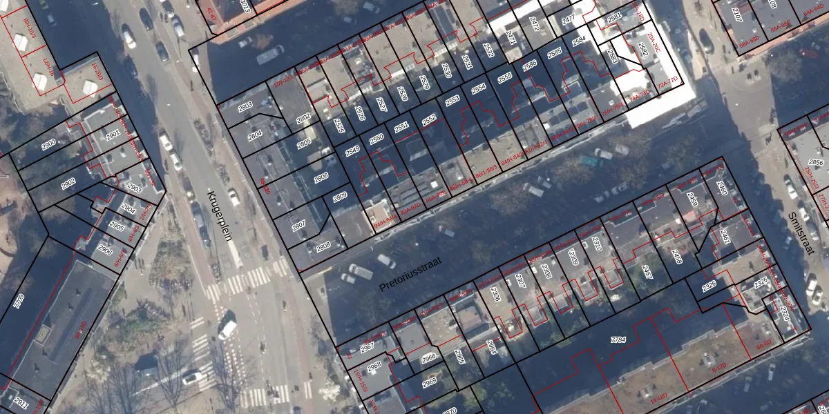 Het perceel waarop Pretoriusstraat 92-D staat heeft een oppervlakte van 159 m². Dit is een middelgroot perceel. De perceeloppervlakte wordt geregistreerd door het Kadaster. Gedetailleerde informatie over de maten van dit perceel kunt u vinden in het rapport Kadastrale kaart met maatvoering van Pretoriusstraat 92-D.