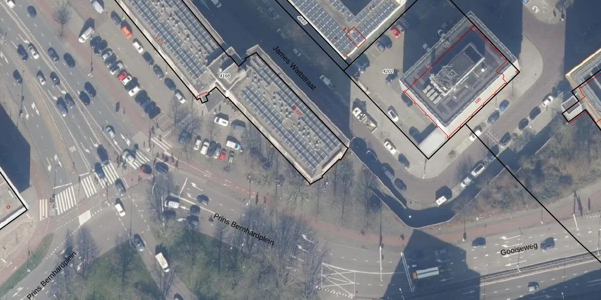 Het perceel waarop Prins Bernhardplein 149 staat heeft een oppervlakte van 1577 m². Dit is een zeer groot perceel. De perceeloppervlakte wordt geregistreerd door het Kadaster. Gedetailleerde informatie over de maten van dit perceel kunt u vinden in het rapport Kadastrale kaart met maatvoering van Prins Bernhardplein 149.