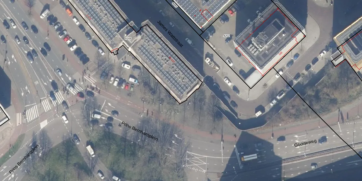 Het perceel waarop Prins Bernhardplein 166 staat heeft een oppervlakte van 1577 m². Dit is een zeer groot perceel. De perceeloppervlakte wordt geregistreerd door het Kadaster. Gedetailleerde informatie over de maten van dit perceel kunt u vinden in het rapport Kadastrale kaart met maatvoering van Prins Bernhardplein 166.