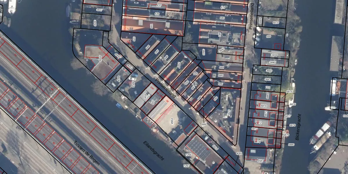 Het perceel waarop Prinseneiland 297 staat heeft een oppervlakte van 90 m². Dit is een klein perceel. De perceeloppervlakte wordt geregistreerd door het Kadaster. Gedetailleerde informatie over de maten van dit perceel kunt u vinden in het rapport Kadastrale kaart met maatvoering van Prinseneiland 297.