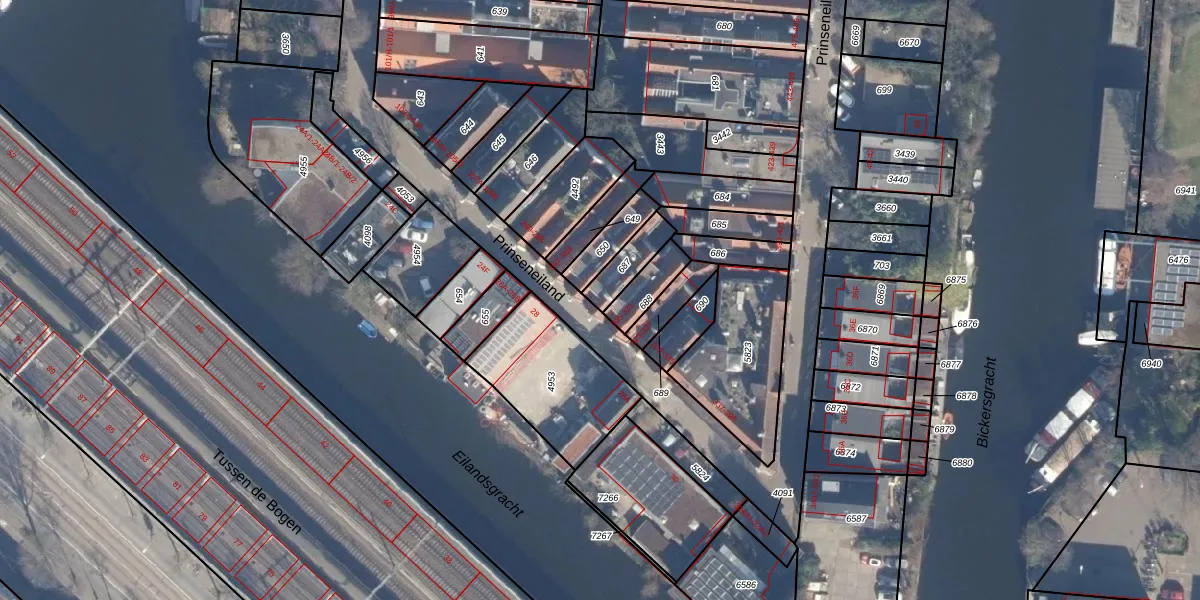 Het perceel waarop Prinseneiland 317 staat heeft een oppervlakte van 87 m². Dit is een klein perceel. De perceeloppervlakte wordt geregistreerd door het Kadaster. Gedetailleerde informatie over de maten van dit perceel kunt u vinden in het rapport Kadastrale kaart met maatvoering van Prinseneiland 317.