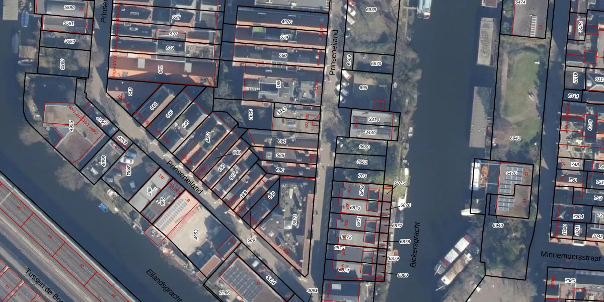 Het perceel waarop Prinseneiland 417 staat heeft een oppervlakte van 92 m². Dit is een klein perceel. De perceeloppervlakte wordt geregistreerd door het Kadaster. Gedetailleerde informatie over de maten van dit perceel kunt u vinden in het rapport Kadastrale kaart met maatvoering van Prinseneiland 417.