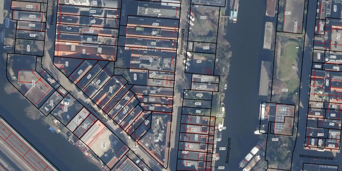 Het perceel waarop Prinseneiland 435 staat heeft een oppervlakte van 226 m². Dit is een middelgroot perceel. De perceeloppervlakte wordt geregistreerd door het Kadaster. Gedetailleerde informatie over de maten van dit perceel kunt u vinden in het rapport Kadastrale kaart met maatvoering van Prinseneiland 435.