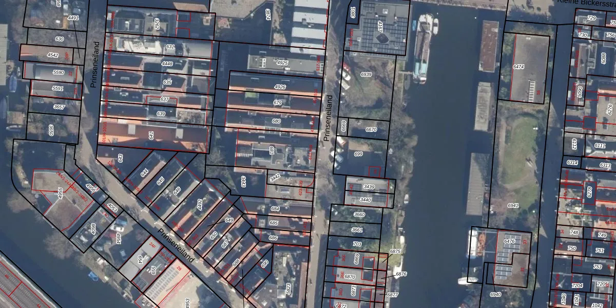 Het perceel waarop Prinseneiland 467 staat heeft een oppervlakte van 445 m². Dit is een groot perceel. De perceeloppervlakte wordt geregistreerd door het Kadaster. Gedetailleerde informatie over de maten van dit perceel kunt u vinden in het rapport Kadastrale kaart met maatvoering van Prinseneiland 467.