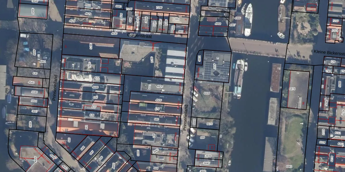 Het perceel waarop Prinseneiland 525 staat heeft een oppervlakte van 348 m². Dit is een groot perceel. De perceeloppervlakte wordt geregistreerd door het Kadaster. Gedetailleerde informatie over de maten van dit perceel kunt u vinden in het rapport Kadastrale kaart met maatvoering van Prinseneiland 525.