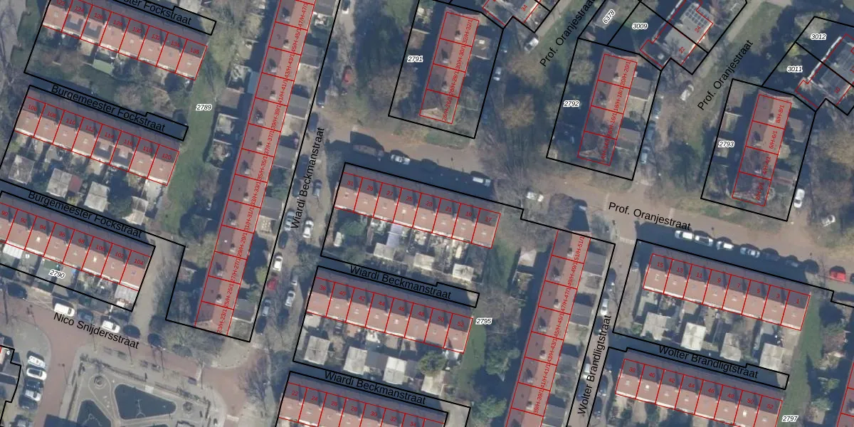 Prof. Oranjestraat 23 is gelegen op kadastraal perceel STN02D2795. Deze kadastrale aanduiding is uniek en wordt gebruikt door het Kadaster om eigendomsrechten en andere zakelijke rechten vast te leggen. Het perceel maakt onderdeel uit van de kadastrale gemeente Sloten Noord-Holland.