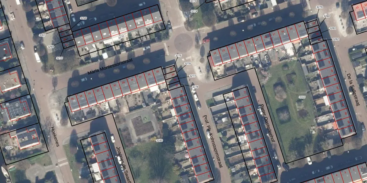 Het perceel waarop Prof. Ph. Kohnstammstraat 40 staat heeft een oppervlakte van 3186 m². Dit is een zeer groot perceel. De perceeloppervlakte wordt geregistreerd door het Kadaster. Gedetailleerde informatie over de maten van dit perceel kunt u vinden in het rapport Kadastrale kaart met maatvoering van Prof. Ph. Kohnstammstraat 40.